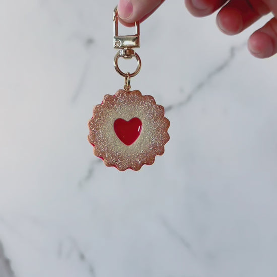 Handmade with love, this Jam Cookie Bag Charm is a sweet kawaii accessory that doubles as a keychain. Designed to look like a heart-filled biscuit dusted with sugar, it adds playful charm to any purse, tote, or keys. Perfect for kawaii fashion lovers, dessert jewelry fans, or as a thoughtful gift, this piece is durable, lightweight, and one-of-a-kind. A whimsical way to carry sweetness everywhere you go.