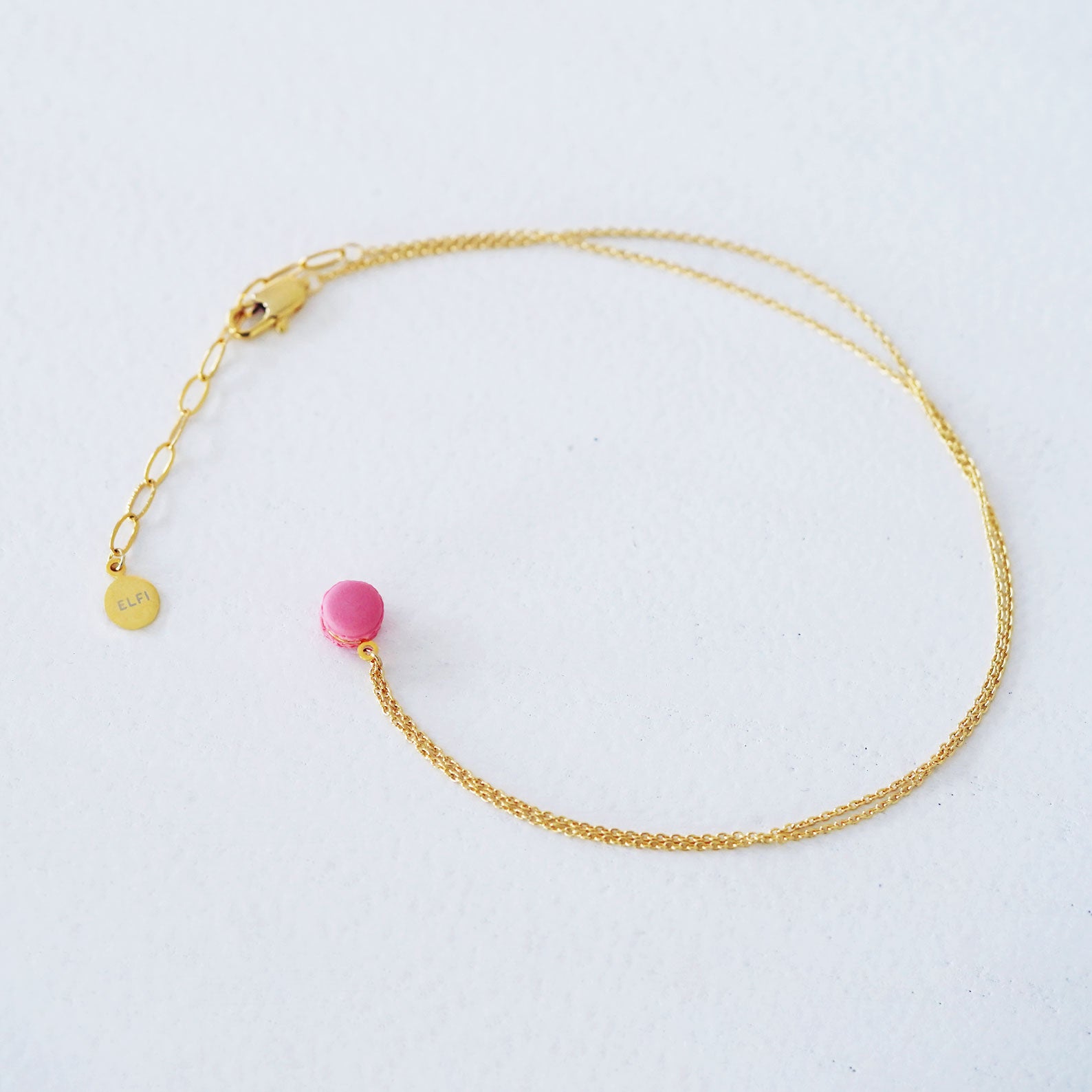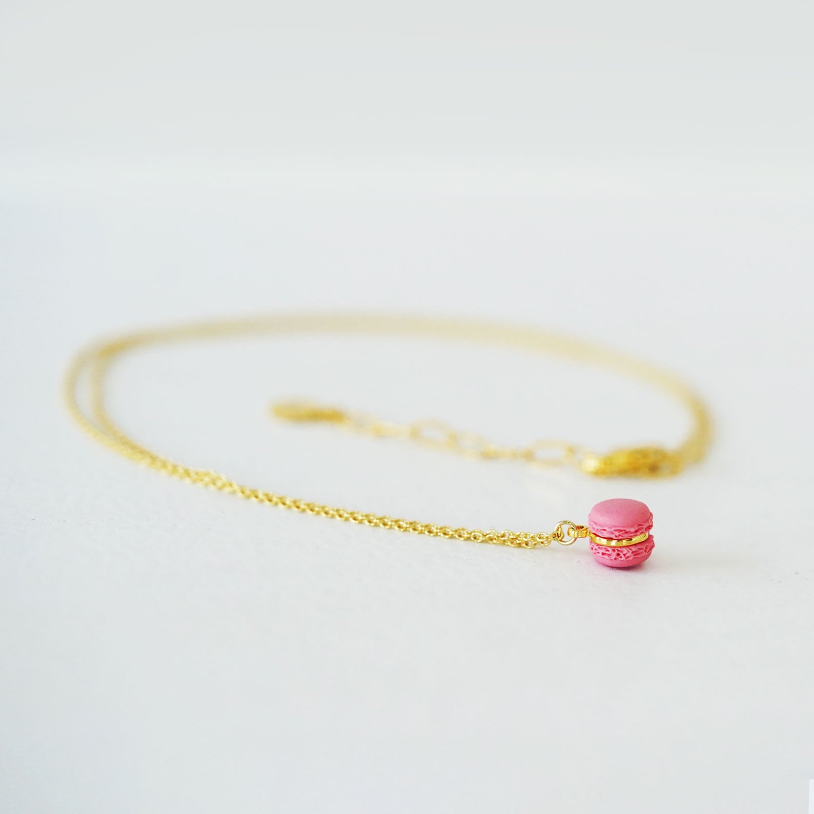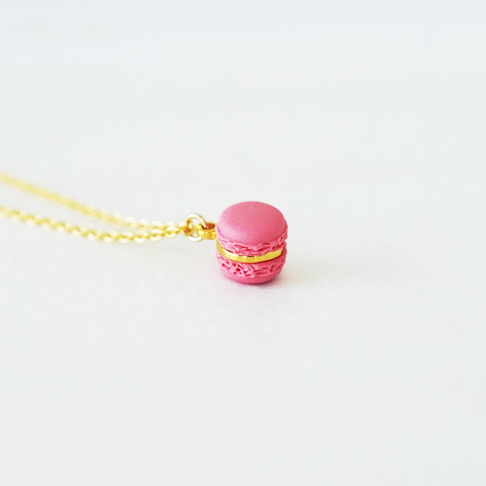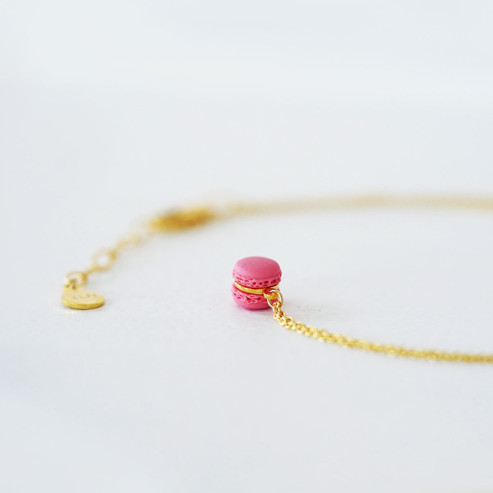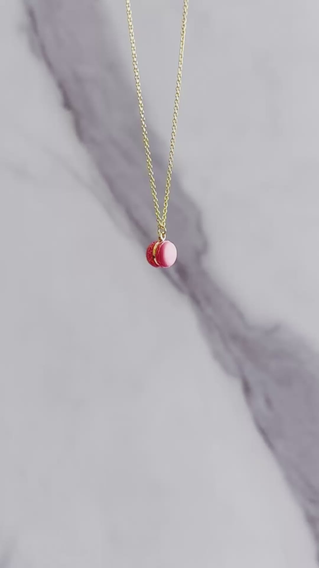 Handmade with clay, this Mini Pink Macaron Necklace is a charming accessory that adds a touch of sweetness to any outfit. Its intricate details and delicate design make it a perfect gift for any macaron lover. Elevate your style with this unique and adorable necklace.