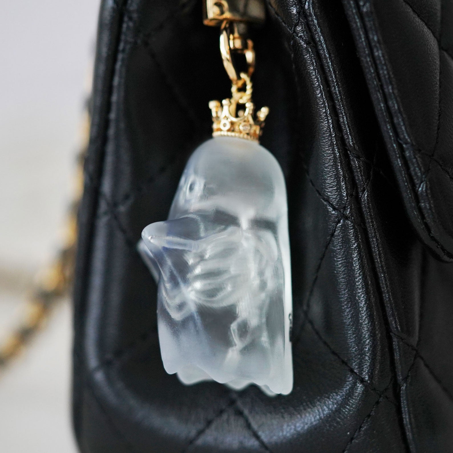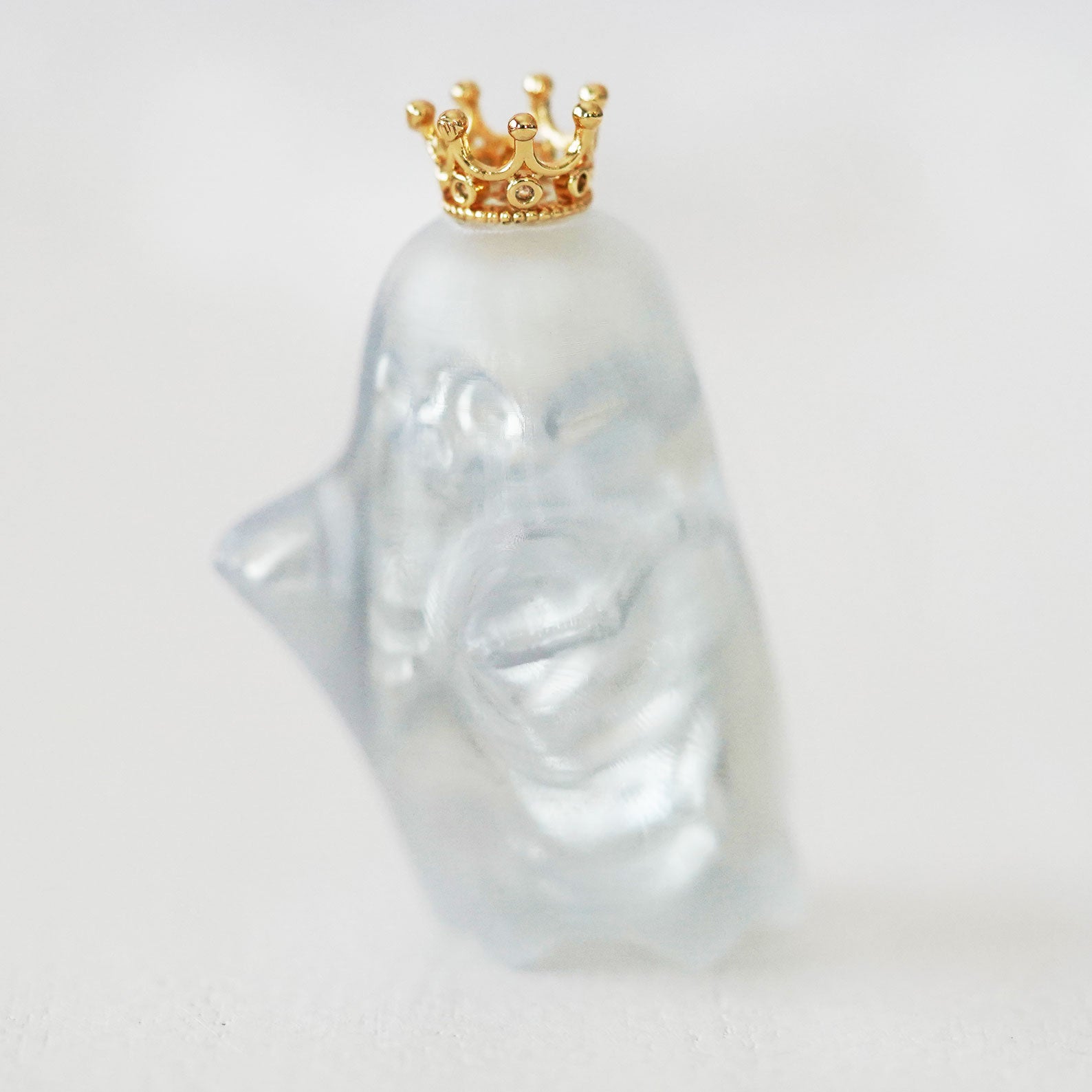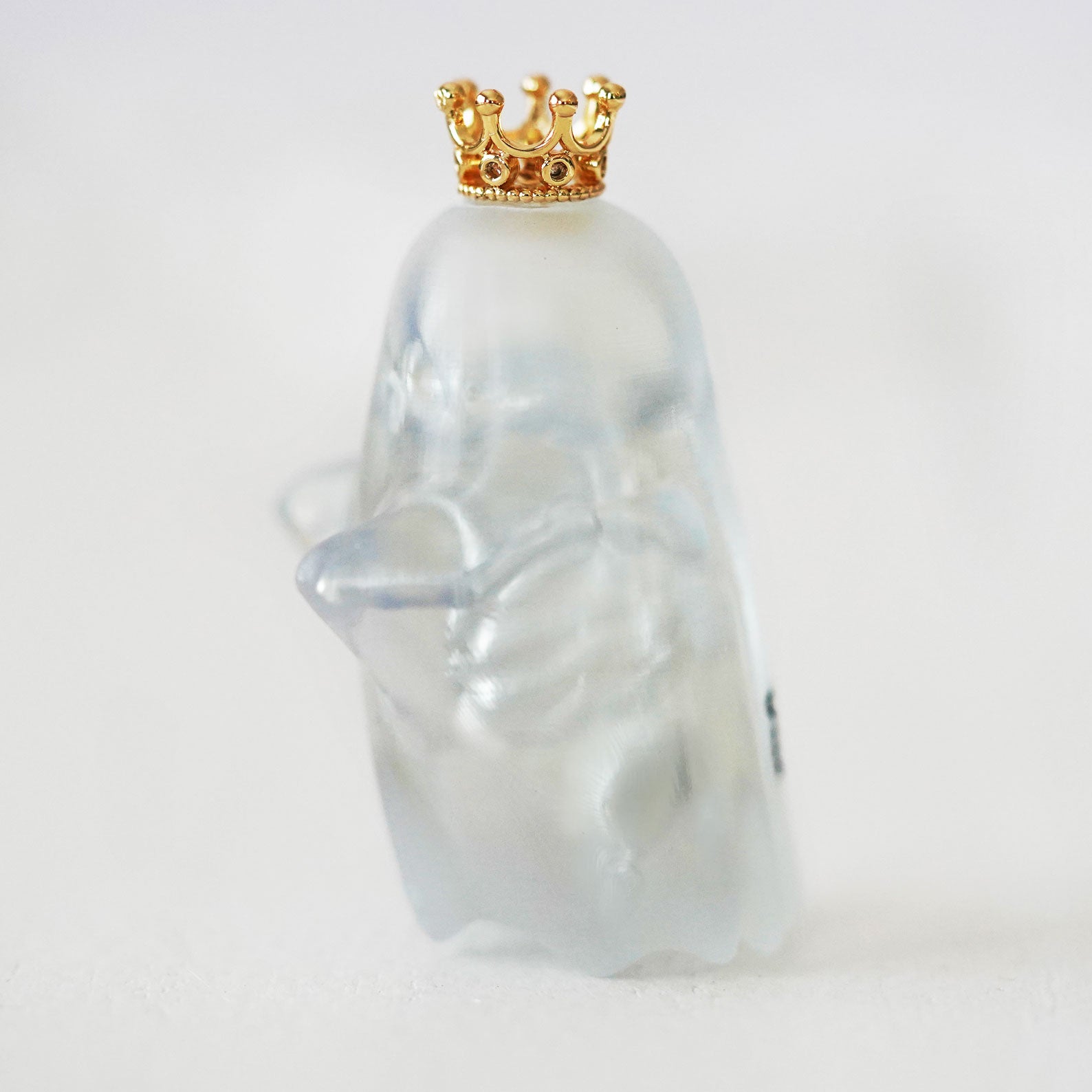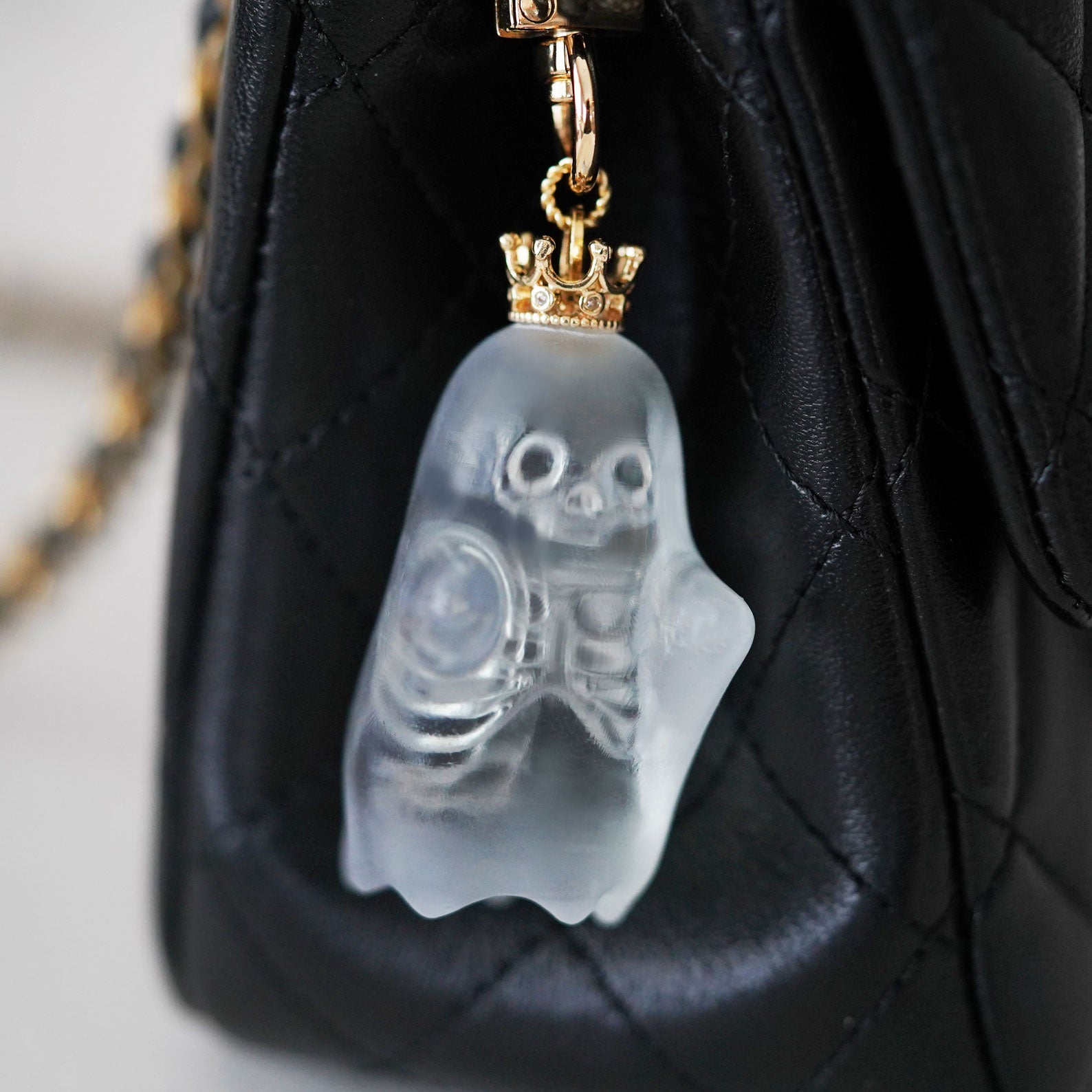 Each ghost pendant is handcrafted with love, featuring a semi-transparent matte finish that lets the delicate skeleton details show through. The gold crown adds a playful royal touch, making it both mysterious and adorable.