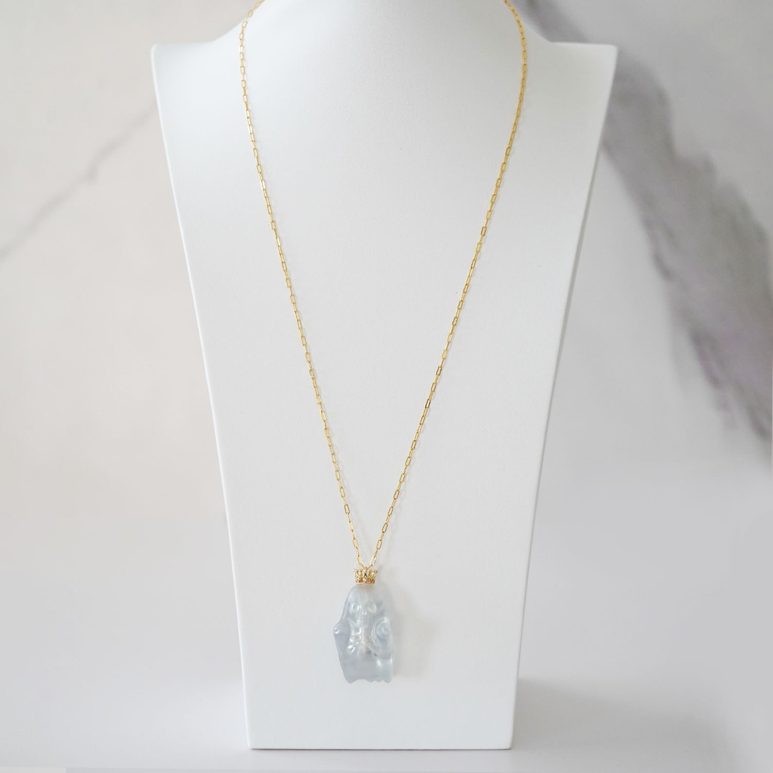 Materials: Resin, gold-plated brass chain, alloy crown